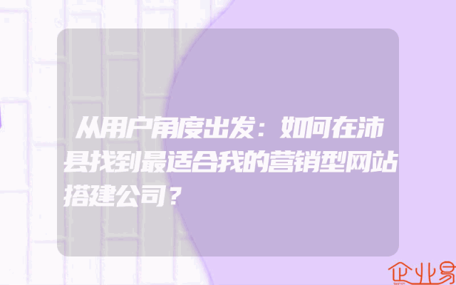 - 从用户角度出发:如何在沛县找到最适合我的营销型网站搭建公司?
