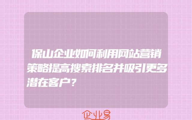 - 保山企业如何利用网站营销策略提高搜索排名并吸引更多潜在客户?