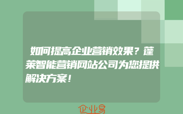 - 如何提高企业营销效果?蓬莱智能营销网站公司为您提供解决方案!