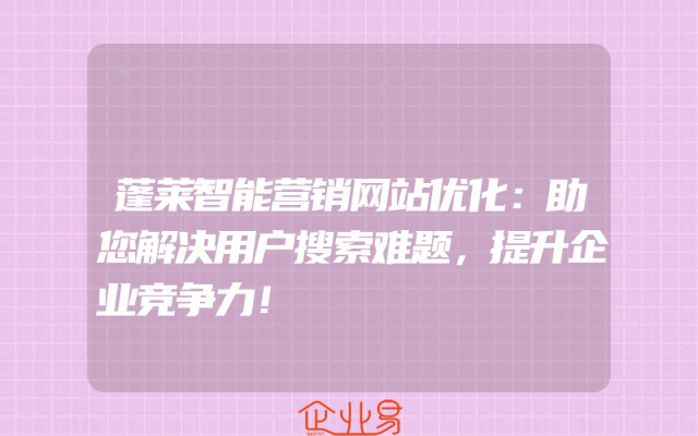 - 蓬莱智能营销网站优化:助您解决用户搜索难题,提升企业竞争力!