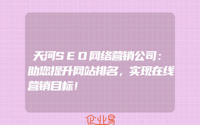 - 天河SEO网络营销公司:助您提升网站排名,实现在线营销目标!