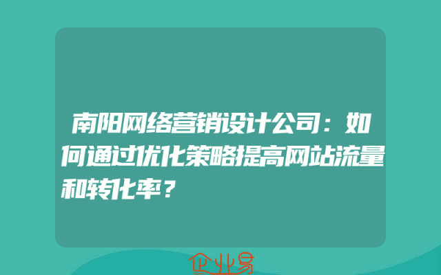 - 南阳网络营销设计公司:如何通过优化策略提高网站流量和转化率?