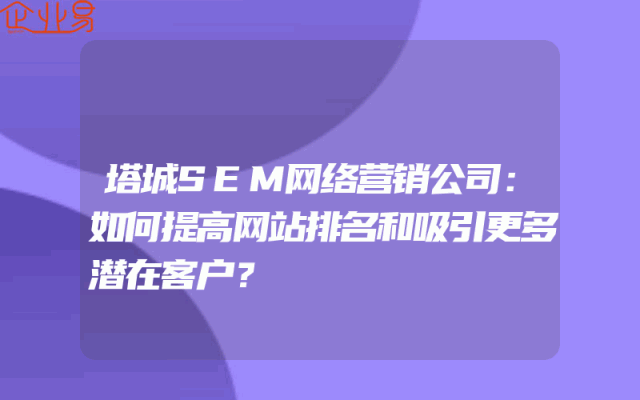 - 塔城SEM网络营销公司:如何提高网站排名和吸引更多潜在客户?