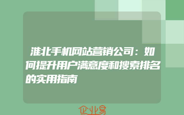 - 淮北手机网站营销公司:如何提升用户满意度和搜索排名的实用指南