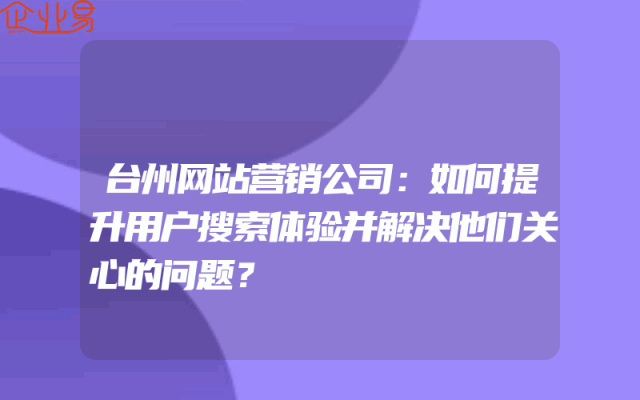 - 台州网站营销公司:如何提升用户搜索体验并解决他们关心的问题?