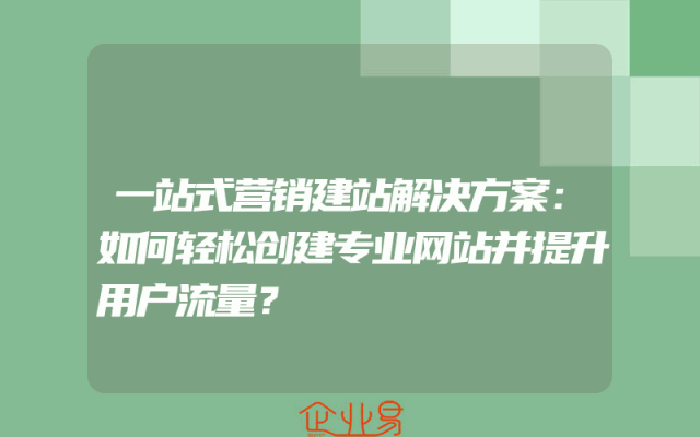 - 一站式营销建站解决方案:如何轻松创建专业网站并提升用户流量?
