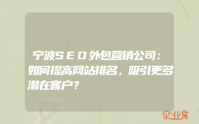 - 宁波SEO外包营销公司:如何提高网站排名,吸引更多潜在客户?