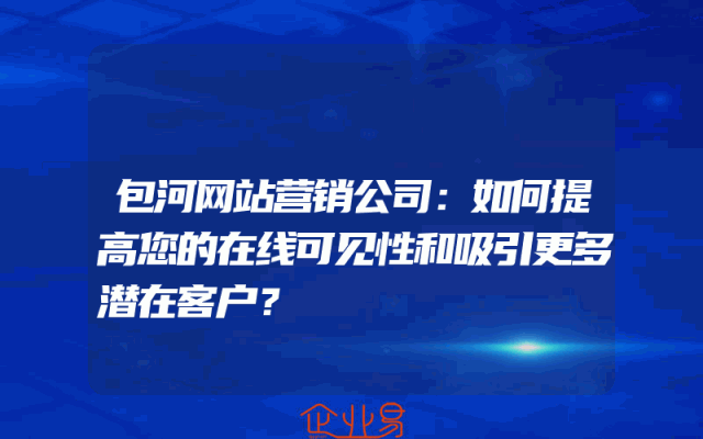 - 包河网站营销公司:如何提高您的在线可见性和吸引更多潜在客户?