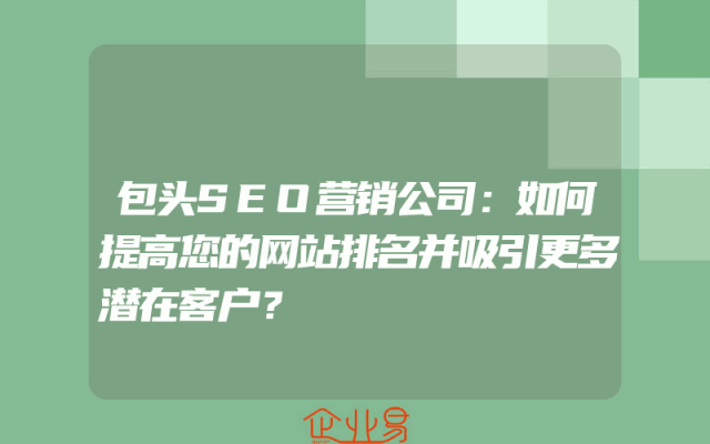 - 包头SEO营销公司:如何提高您的网站排名并吸引更多潜在客户?