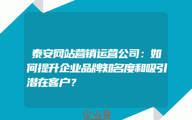 - 泰安网站营销运营公司:如何提升企业品牌知名度和吸引潜在客户?