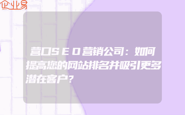 - 营口SEO营销公司:如何提高您的网站排名并吸引更多潜在客户?