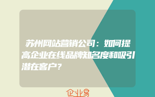 - 苏州网站营销公司:如何提高企业在线品牌知名度和吸引潜在客户?