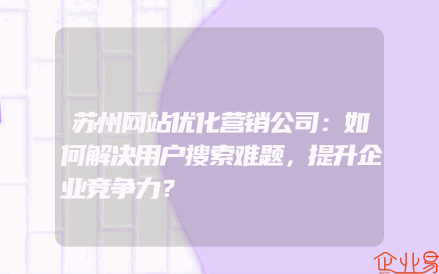 - 苏州网站优化营销公司:如何解决用户搜索难题,提升企业竞争力?