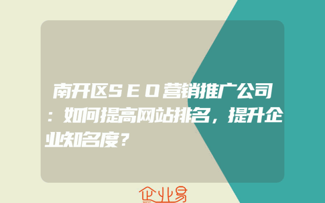 - 南开区SEO营销推广公司:如何提高网站排名,提升企业知名度?
