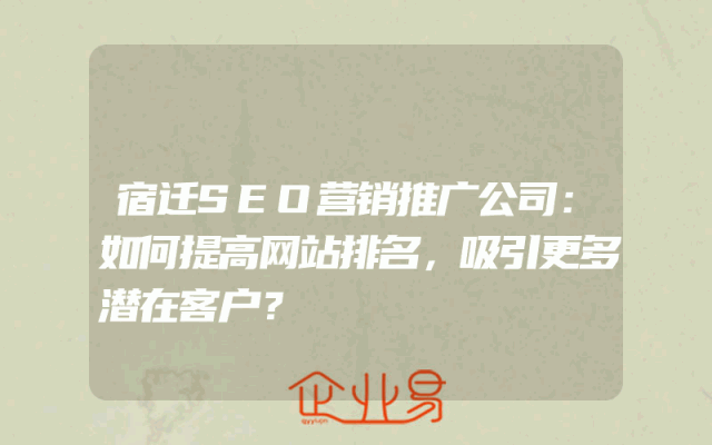 - 宿迁SEO营销推广公司:如何提高网站排名,吸引更多潜在客户?
