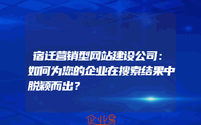 - 宿迁营销型网站建设公司:如何为您的企业在搜索结果中脱颖而出?
