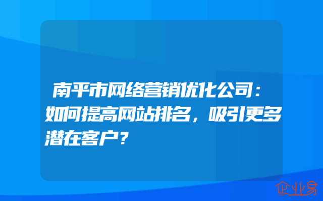 - 南平市网络营销优化公司:如何提高网站排名,吸引更多潜在客户?