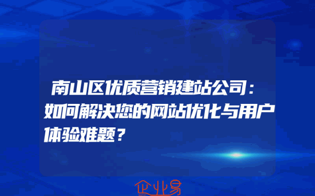 - 南山区优质营销建站公司:如何解决您的网站优化与用户体验难题?
