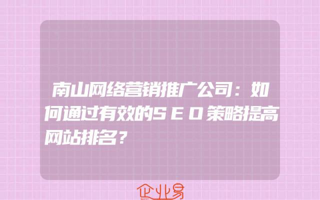 - 南山网络营销推广公司:如何通过有效的SEO策略提高网站排名?