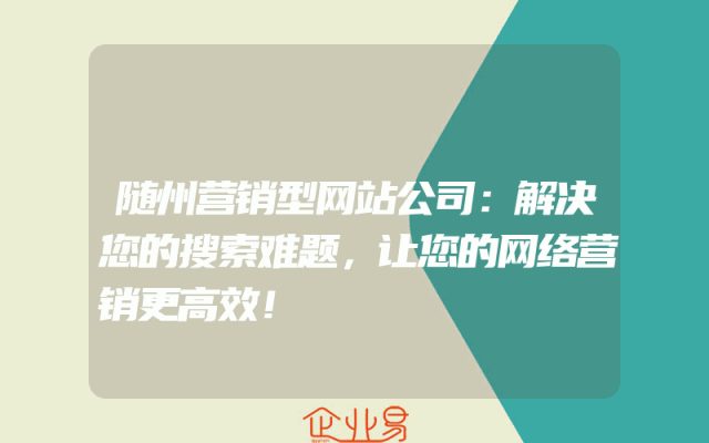 - 随州营销型网站公司:解决您的搜索难题,让您的网络营销更高效!