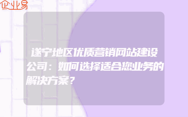 - 遂宁地区优质营销网站建设公司:如何选择适合您业务的解决方案?