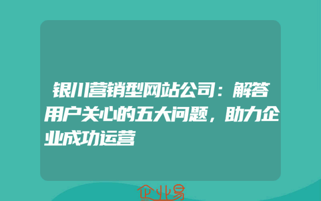 - 银川营销型网站公司:解答用户关心的五大问题,助力企业成功运营