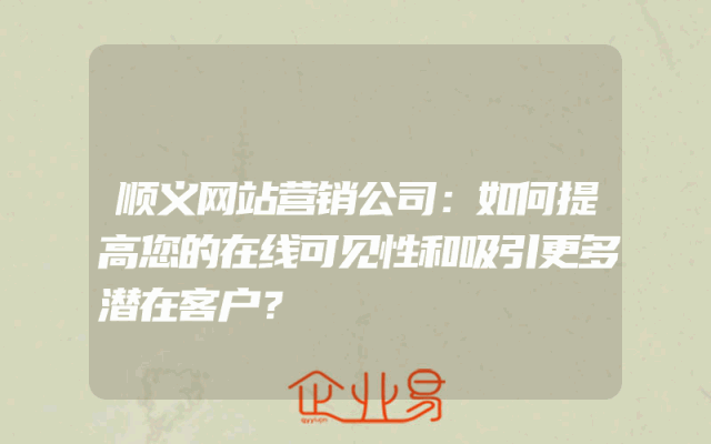 - 顺义网站营销公司:如何提高您的在线可见性和吸引更多潜在客户?