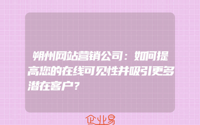 - 朔州网站营销公司:如何提高您的在线可见性并吸引更多潜在客户?
