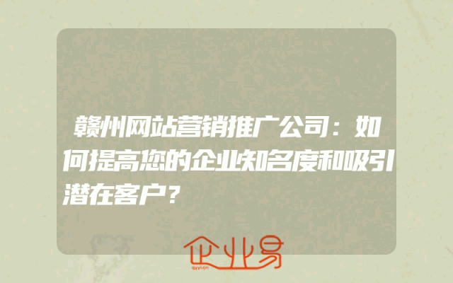 - 赣州网站营销推广公司:如何提高您的企业知名度和吸引潜在客户?
