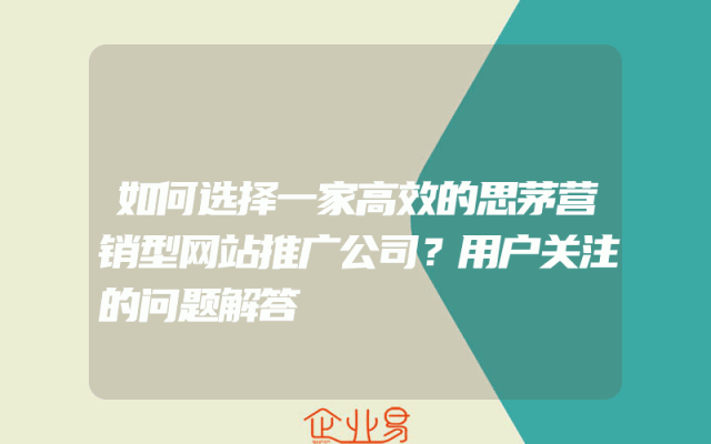 - 如何选择一家高效的思茅营销型网站推广公司?用户关注的问题解答
