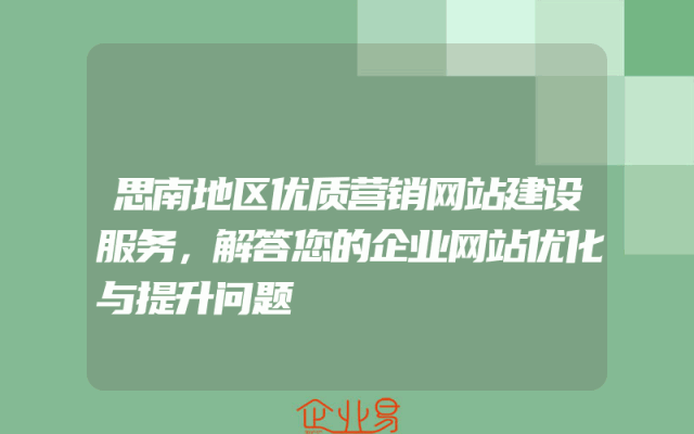 - 思南地区优质营销网站建设服务,解答您的企业网站优化与提升问题