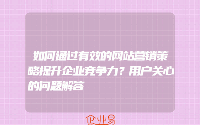 - 如何通过有效的网站营销策略提升企业竞争力?用户关心的问题解答