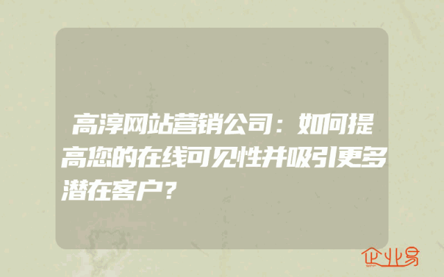 - 高淳网站营销公司:如何提高您的在线可见性并吸引更多潜在客户?