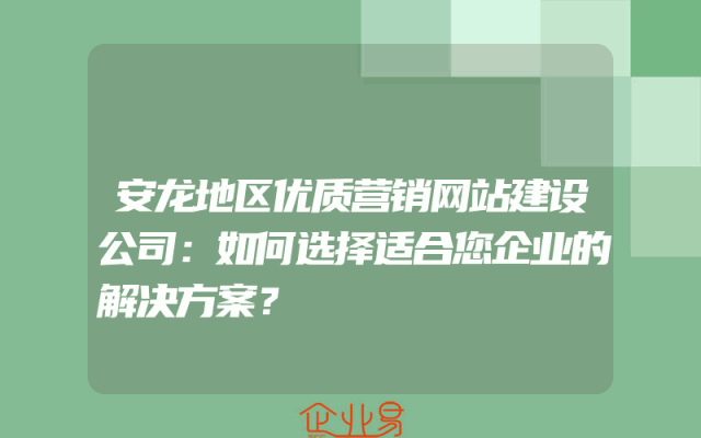 - 安龙地区优质营销网站建设公司:如何选择适合您企业的解决方案?