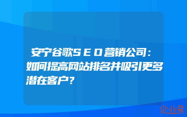 - 安宁谷歌SEO营销公司:如何提高网站排名并吸引更多潜在客户?