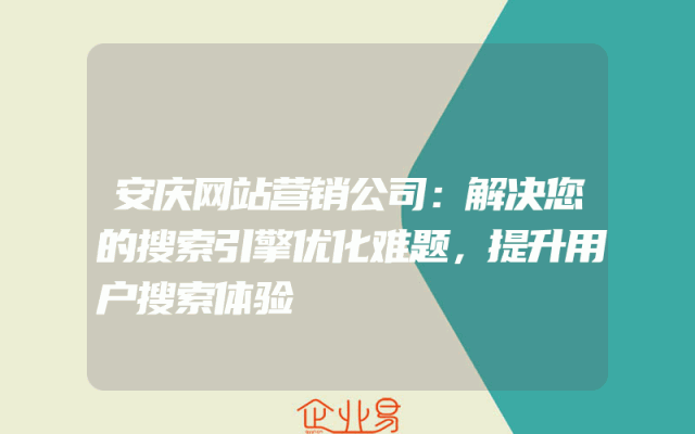 - 安庆网站营销公司:解决您的搜索引擎优化难题,提升用户搜索体验