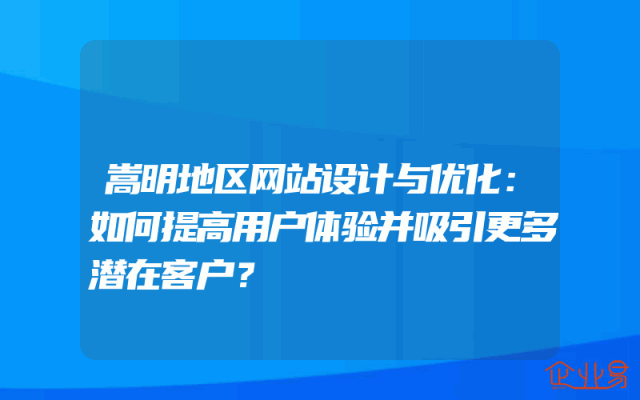 - 嵩明地区网站设计与优化:如何提高用户体验并吸引更多潜在客户?