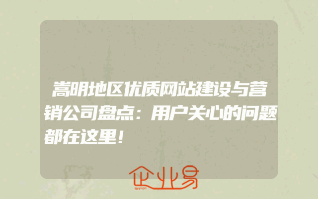 - 嵩明地区优质网站建设与营销公司盘点:用户关心的问题都在这里!