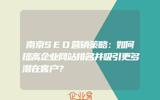 - 南京SEO营销策略:如何提高企业网站排名并吸引更多潜在客户?