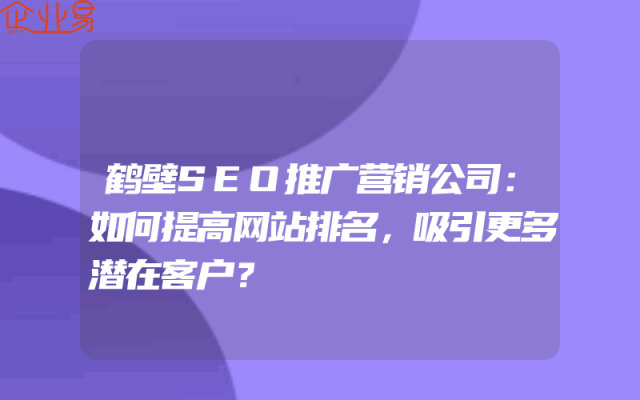 - 鹤壁SEO推广营销公司:如何提高网站排名,吸引更多潜在客户?