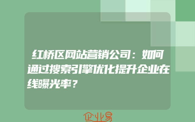 - 红桥区网站营销公司:如何通过搜索引擎优化提升企业在线曝光率?