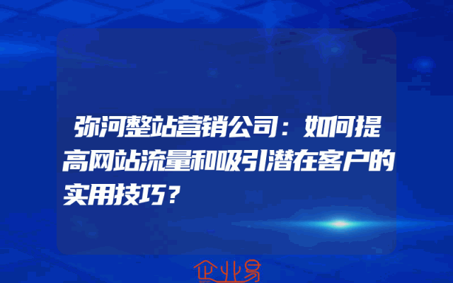 - 弥河整站营销公司:如何提高网站流量和吸引潜在客户的实用技巧?