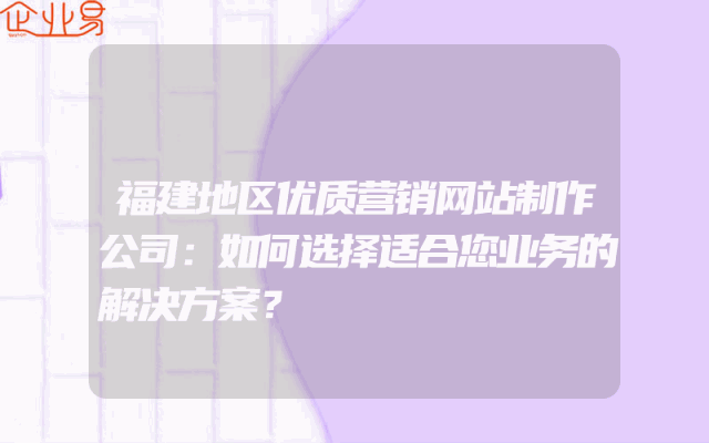 - 福建地区优质营销网站制作公司:如何选择适合您业务的解决方案?