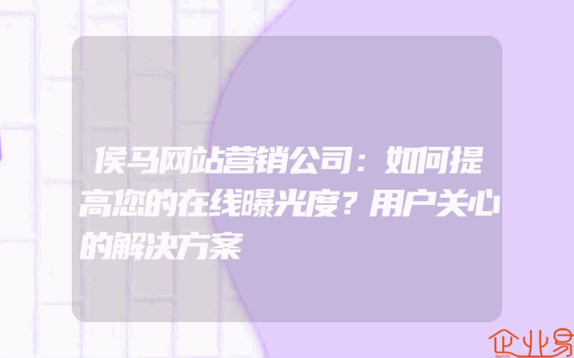 - 侯马网站营销公司:如何提高您的在线曝光度?用户关心的解决方案