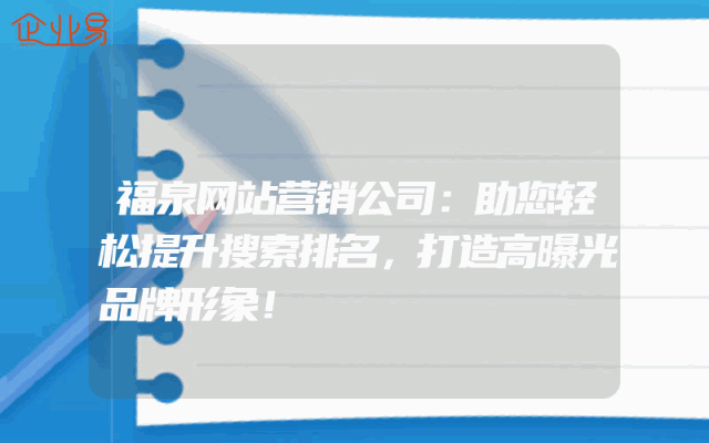- 福泉网站营销公司:助您轻松提升搜索排名,打造高曝光品牌形象!