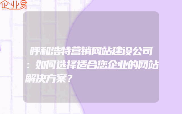 - 呼和浩特营销网站建设公司:如何选择适合您企业的网站解决方案?