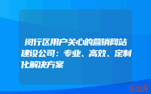 - 闵行区用户关心的营销网站建设公司:专业、高效、定制化解决方案