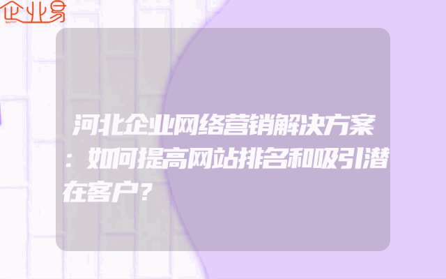 - 河北企业网络营销解决方案:如何提高网站排名和吸引潜在客户?