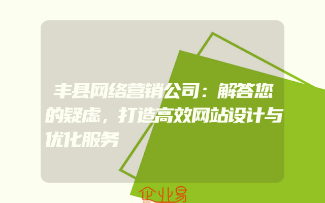 - 丰县网络营销公司:解答您的疑虑,打造高效网站设计与优化服务
