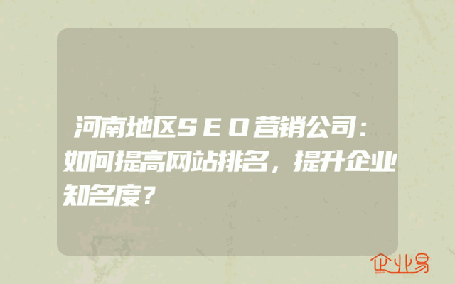- 河南地区SEO营销公司:如何提高网站排名,提升企业知名度?